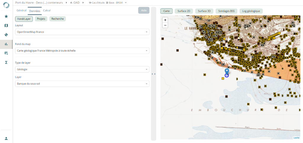 Le module BASE offre la possibilité d'afficher la carte géologique de la France et d'extraire les informations géologiques numérisées à partir de la Base de données des Sols (BSS).